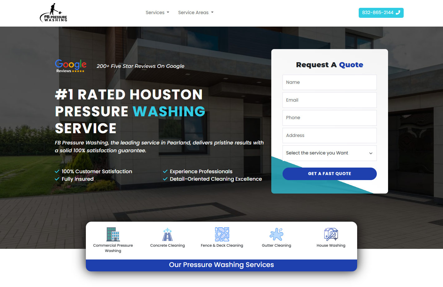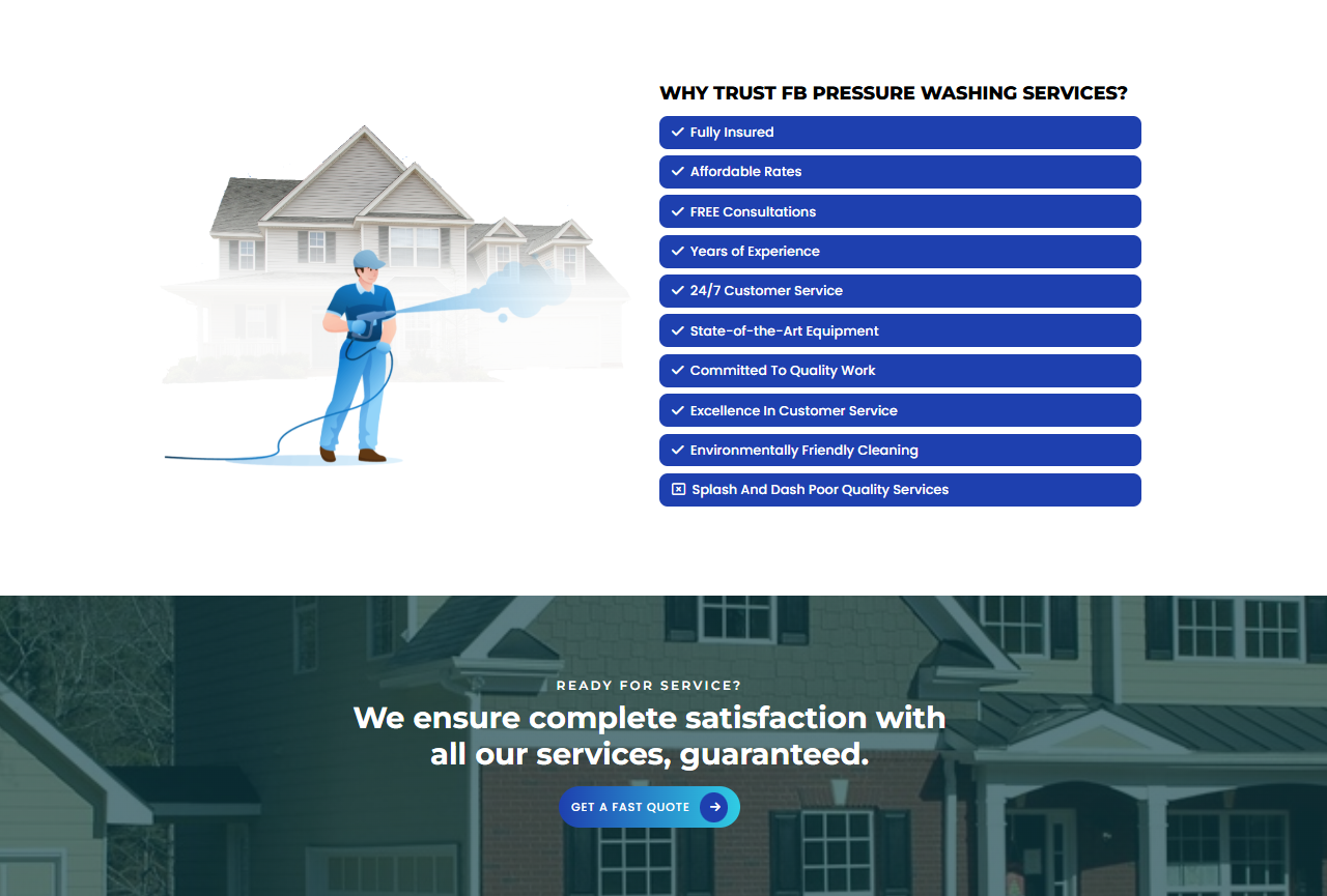 - A clean, conversion-focused landing page designed for a pressure washing service. Key features